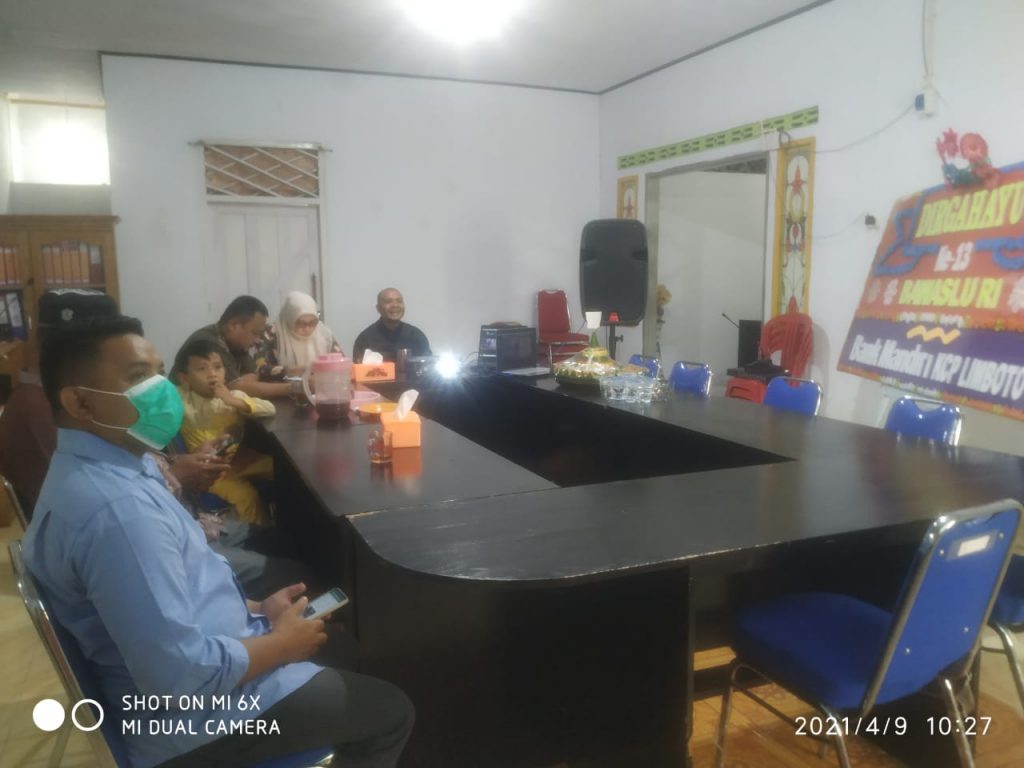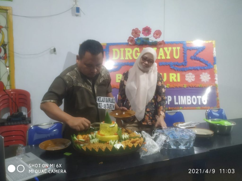 Ketua, Anggota dan Koordinator Sekretariat serta staf Bawaslu Gorontalo Utara saat mengikuti perayaan HUT Bawaslu ke-13 melalui Zoom Meeting bersama Bawaslu RI.\n\n\n\nBawaslu Gorontalo Utara sendiri meerayaan HUT Bawaslu ini secara sederhana dengan membacakan doa sholawat dan pemotongan tumpeng. Perayaan ini dihadiri oleh Ketua, Anggota, Koordinator Sekretariat dan staf.